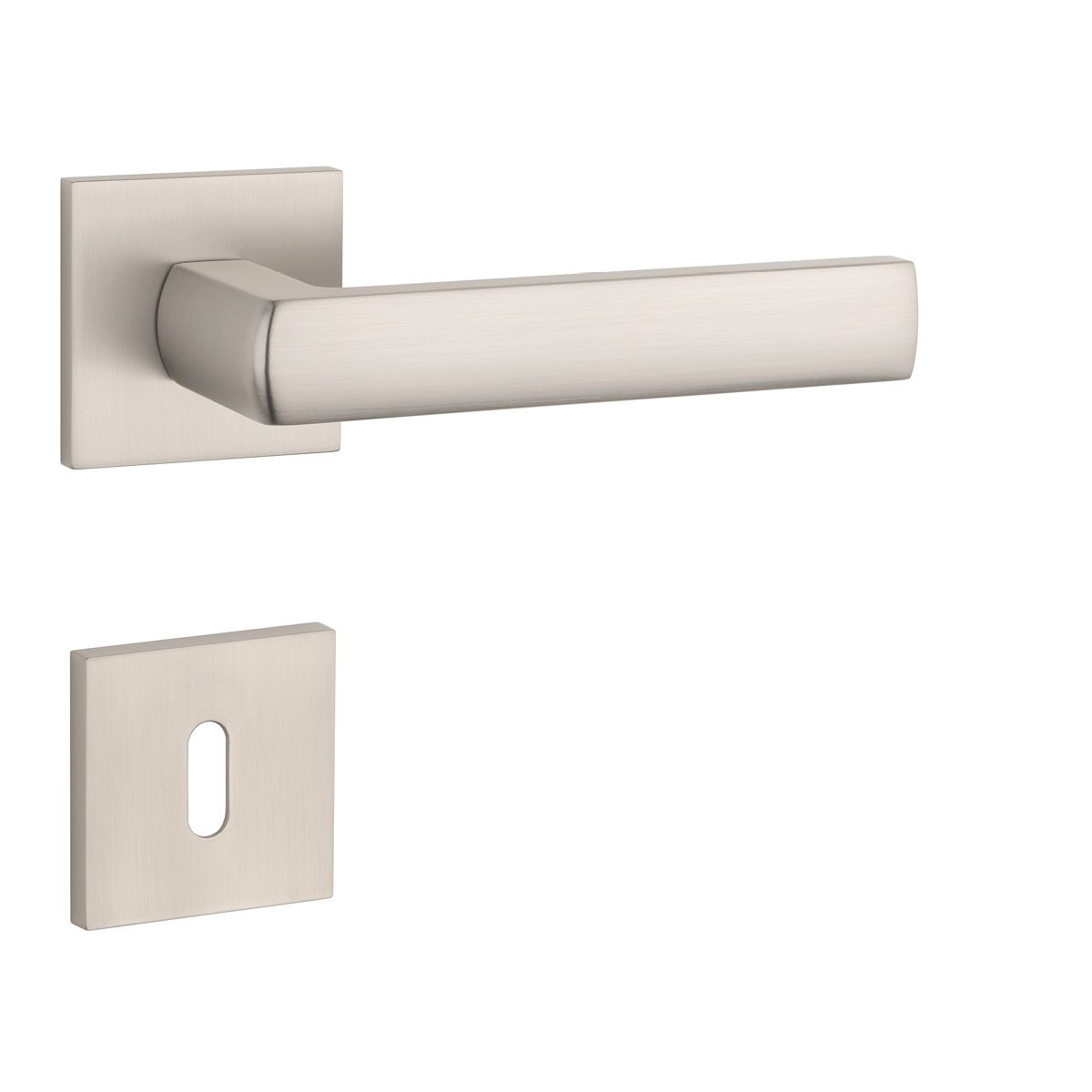 Rozetová klika na interiérové dveře s hranatou rozetou je vyrobena z materiálů vysoké kvality - zamak a je povrchově upravena. Rozeta má rozměr 52x52 mm a tloušťku jen 7 mm. Minimalistický design rozety s vysokou stabilitou kliky na dveřích působí jemně, a tím ponechává prostor pro vyniknutí designu samotné kliky.