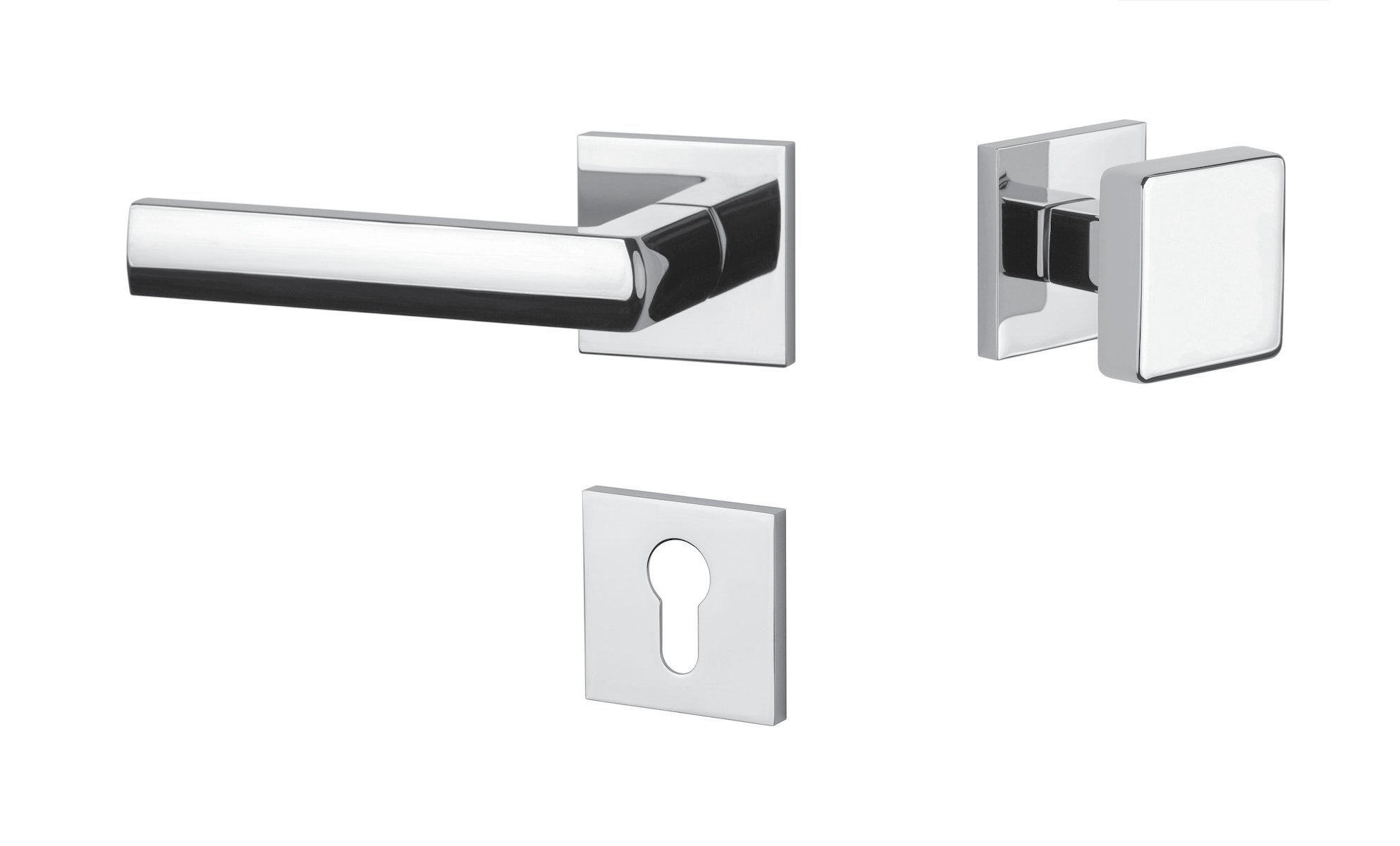 Rozetová klika na interiérové dveře s hranatou rozetou je vyrobena z materiálů vysoké kvality - zamak a je povrchově upravena. Rozeta má rozměr 52x52 mm a tloušťku jen 7 mm. Minimalistický design rozety s vysokou stabilitou kliky na dveřích působí jemně, a tím ponechává prostor pro vyniknutí designu samotné kliky.