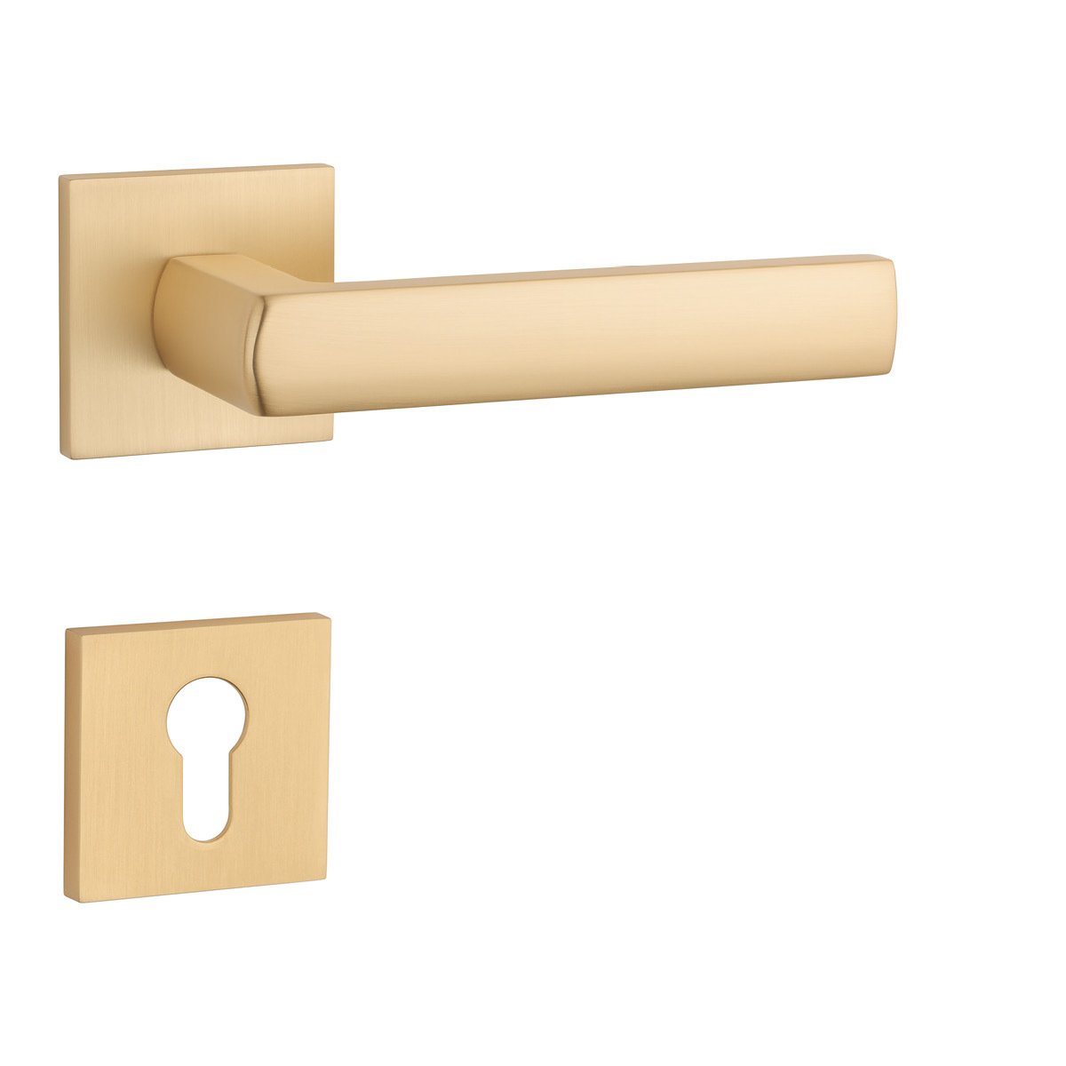 Rozetová klika na interiérové dveře s hranatou rozetou je vyrobena z materiálů vysoké kvality - zamak a je povrchově upravena. Rozeta má rozměr 52x52 mm a tloušťku jen 7 mm. Minimalistický design rozety s vysokou stabilitou kliky na dveřích působí jemně, a tím ponechává prostor pro vyniknutí designu samotné kliky.