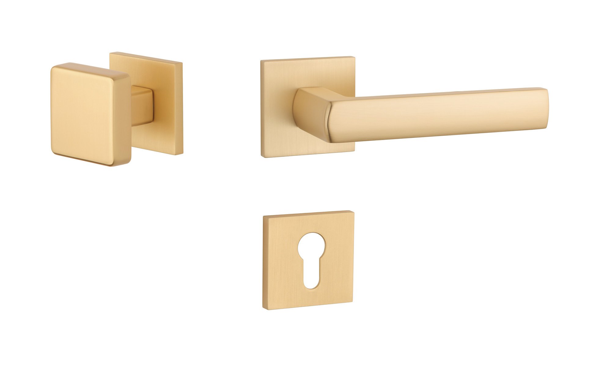 Rozetová klika na interiérové dveře s hranatou rozetou je vyrobena z materiálů vysoké kvality - zamak a je povrchově upravena. Rozeta má rozměr 52x52 mm a tloušťku jen 7 mm. Minimalistický design rozety s vysokou stabilitou kliky na dveřích působí jemně, a tím ponechává prostor pro vyniknutí designu samotné kliky.