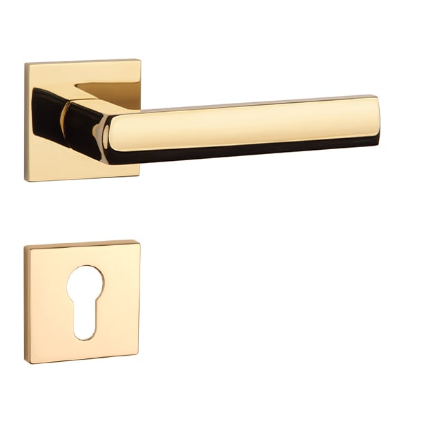 Rozetová klika na interiérové dveře s hranatou rozetou je vyrobena z materiálů vysoké kvality - zamak a je povrchově upravena. Rozeta má rozměr 52x52 mm a tloušťku jen 7 mm. Minimalistický design rozety s vysokou stabilitou kliky na dveřích působí jemně, a tím ponechává prostor pro vyniknutí designu samotné kliky.