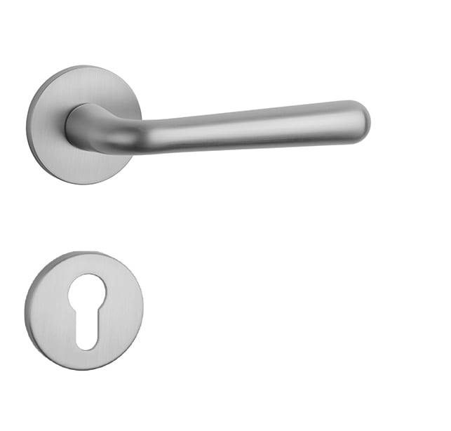 Rozetová klika na interiérové dveře s kulatou rozetou je vyrobena z materiálů vysoké kvality - zamak a je povrchově upravena. Rozeta má průměr 52 mm a tloušťku jen 7 mm. Minimalistický design rozety s vysokou stabilitou kliky na dveřích působí jemně, a tím ponechává prostor pro vyniknutí designu samotné kliky.