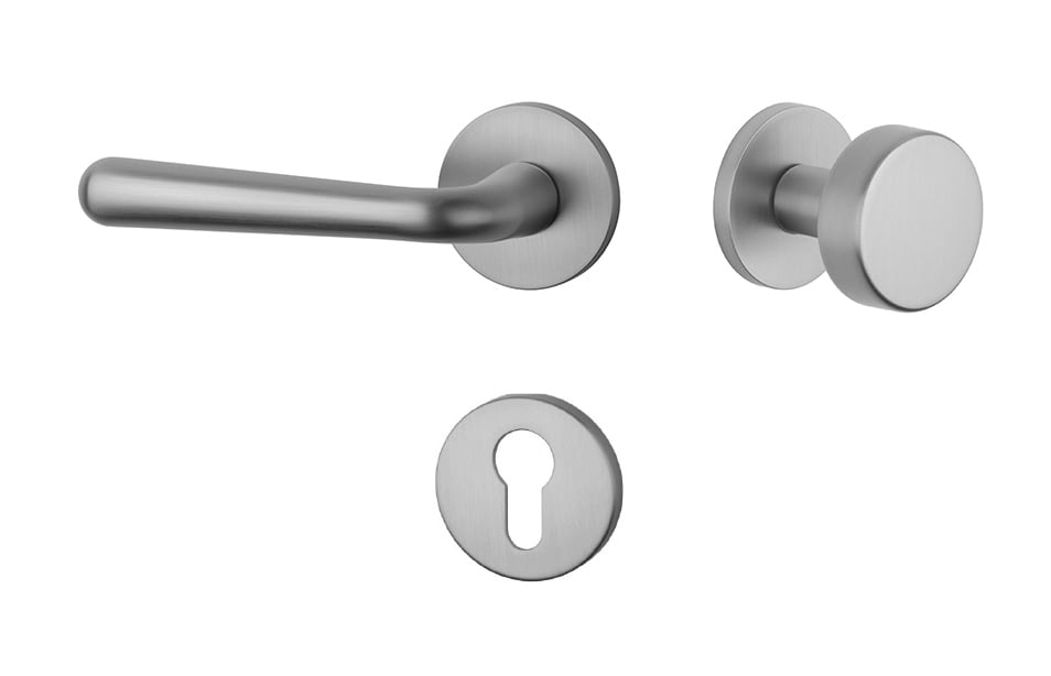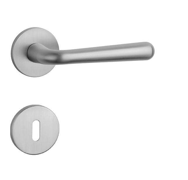 Rozetová klika na interiérové dveře s kulatou rozetou je vyrobena z materiálů vysoké kvality - zamak a je povrchově upravena. Rozeta má průměr 52 mm a tloušťku jen 7 mm. Minimalistický design rozety s vysokou stabilitou kliky na dveřích působí jemně, a tím ponechává prostor pro vyniknutí designu samotné kliky.