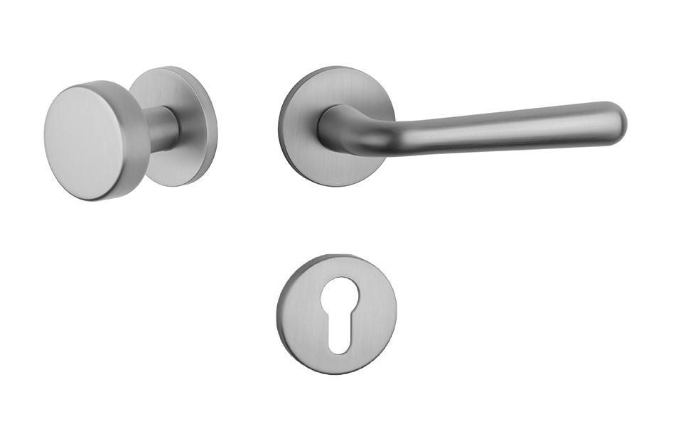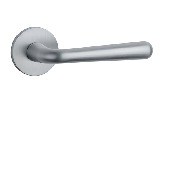 Rozetová klika na interiérové dveře s kulatou rozetou je vyrobena z materiálů vysoké kvality - zamak a je povrchově upravena. Rozeta má průměr 52 mm a tloušťku jen 7 mm. Minimalistický design rozety s vysokou stabilitou kliky na dveřích působí jemně, a tím ponechává prostor pro vyniknutí designu samotné kliky.