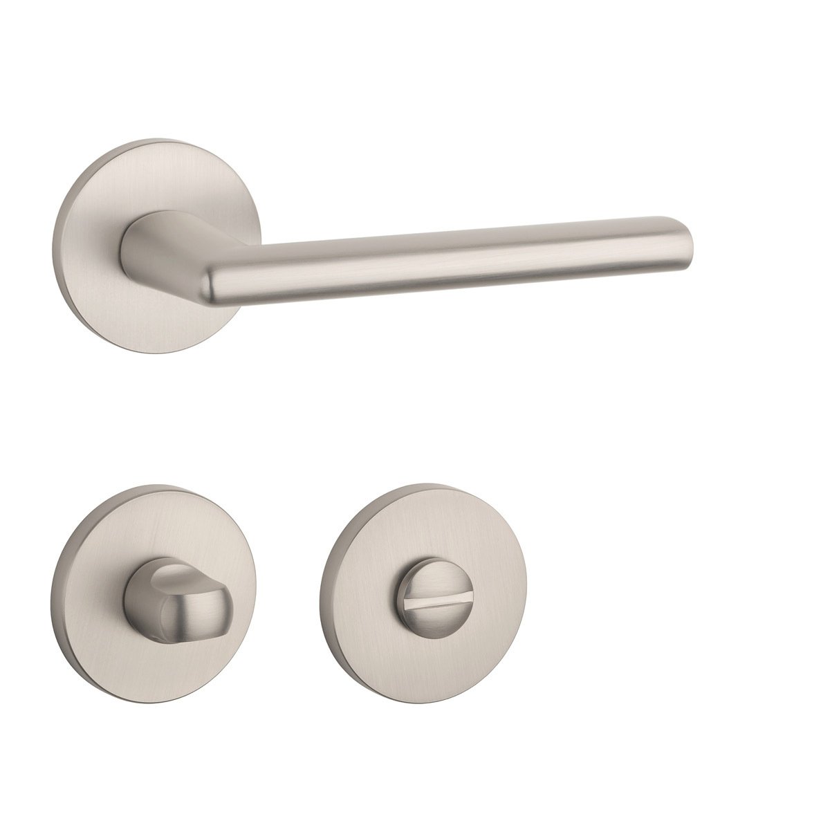 Rozetová klika na interiérové dveře s kulatou rozetou je vyrobena z materiálů vysoké kvality - zamak a je povrchově upravena. Rozeta má průměr 54 mm a tloušťku jen 7 mm. Minimalistický design rozety s vysokou stabilitou kliky na dveřích působí jemně, a tím ponechává prostor pro vyniknutí designu samotné kliky.