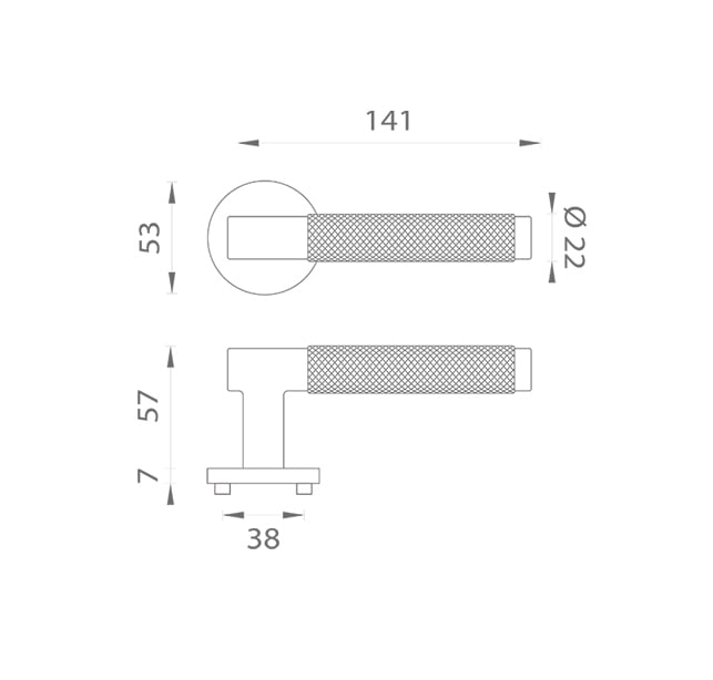 Rozetová klika na interiérové dveře s kulatou rozetou je vyrobená z materiálů vysoké kvality - zamak a je povrchově upravená. Rozeta má průměr 53 mm a tloušťku jen 7 mm. Minimalistický design rozety s vysokou stabilitou kliky na dveřích působí jemně, a tím ponechává prostor pro vyniknutí designu samotné kliky.