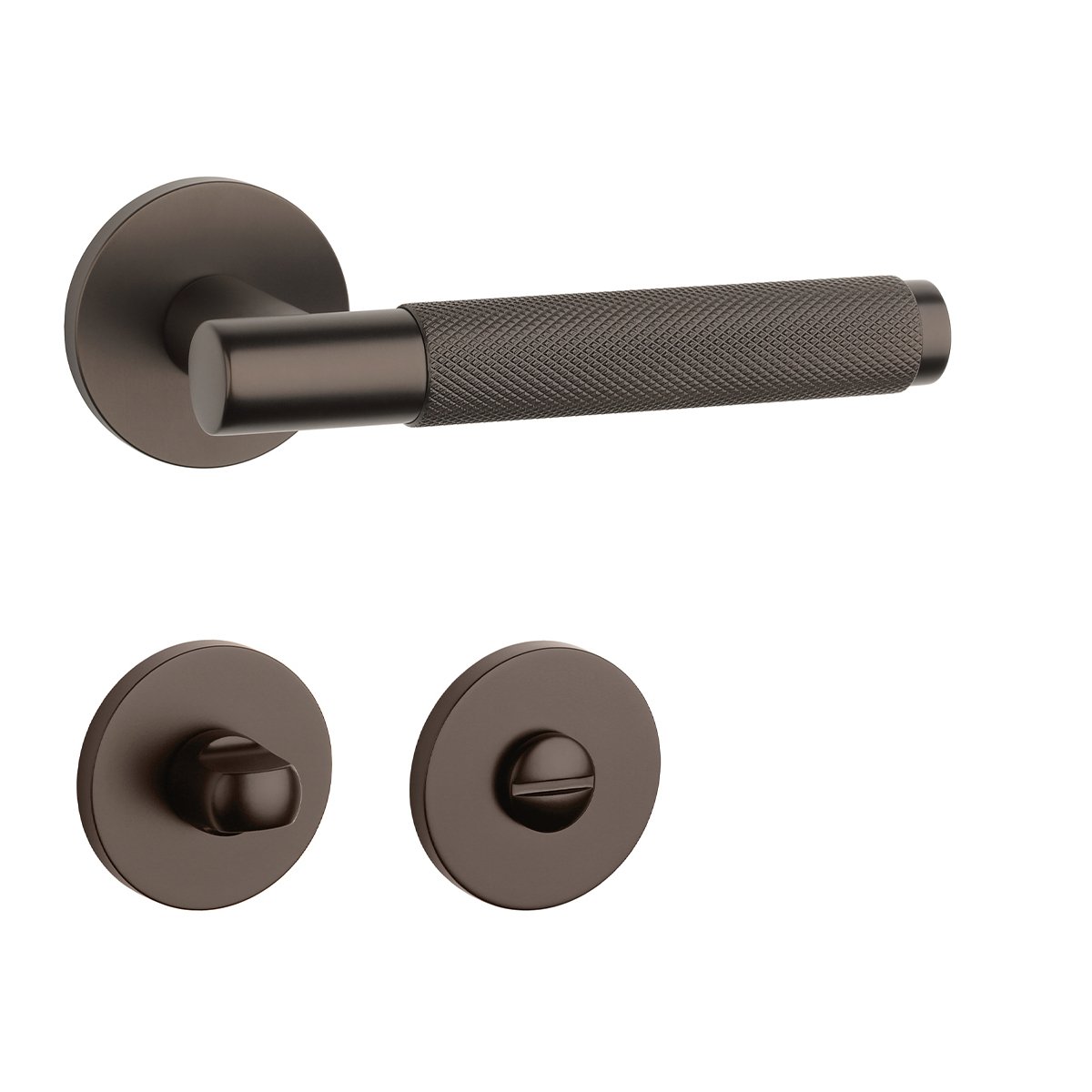 Rozetová klika na interiérové dveře s kulatou rozetou je vyrobená z materiálů vysoké kvality - zamak a je povrchově upravená. Rozeta má průměr 53 mm a tloušťku jen 7 mm. Minimalistický design rozety s vysokou stabilitou kliky na dveřích působí jemně, a tím ponechává prostor pro vyniknutí designu samotné kliky.
