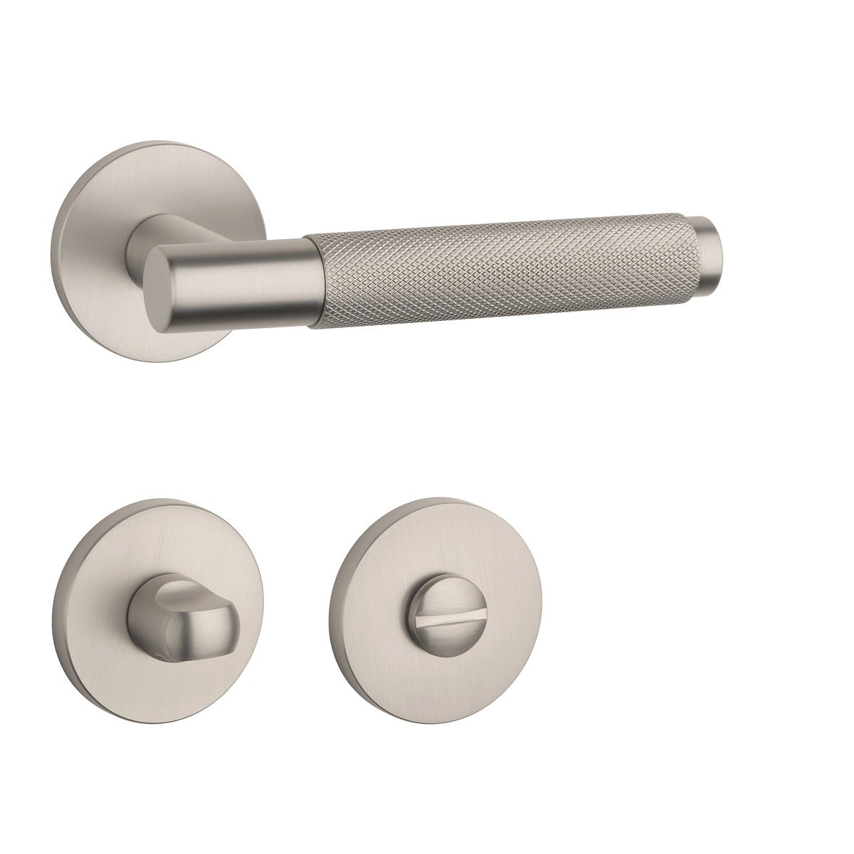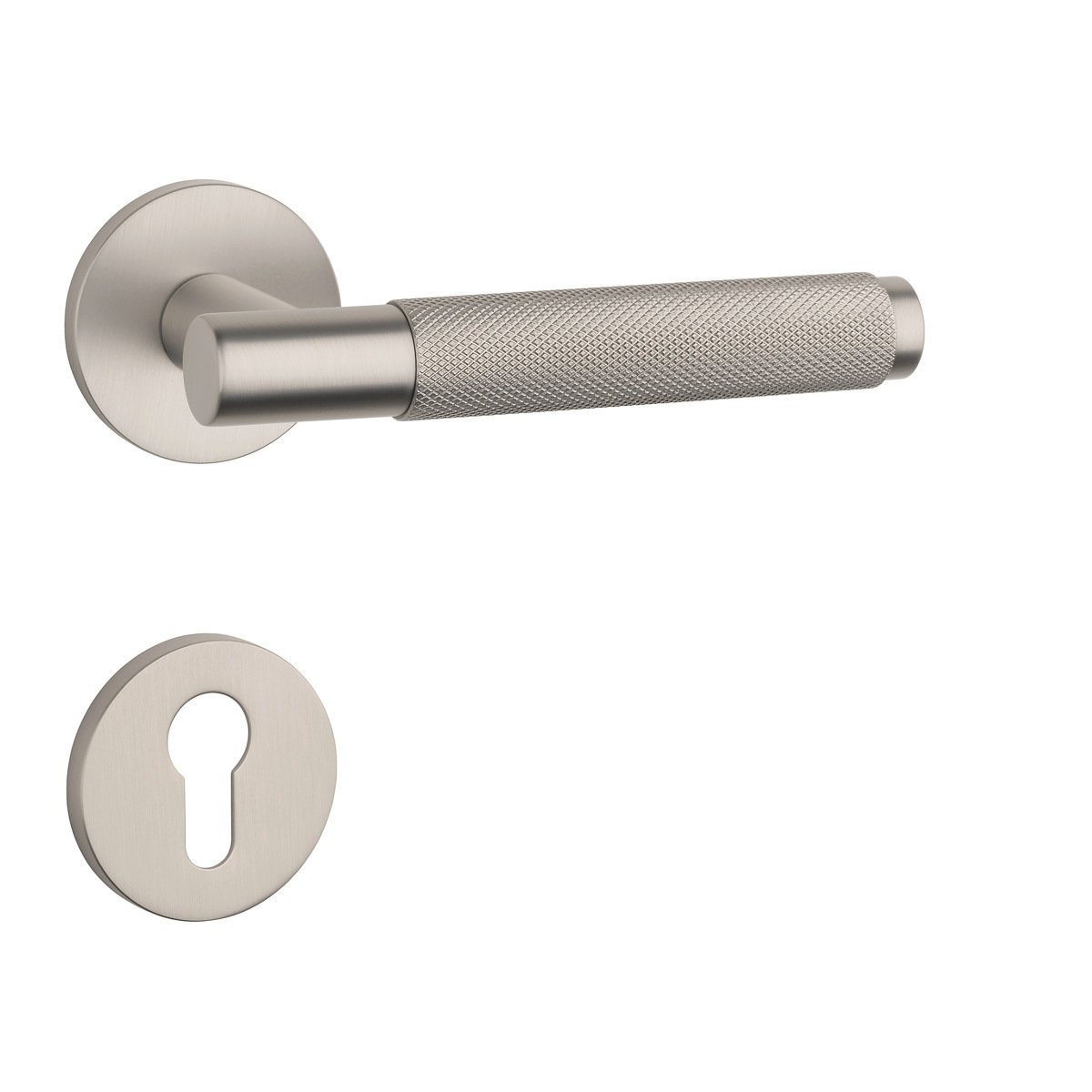 Rozetová klika na interiérové dveře s kulatou rozetou je vyrobená z materiálů vysoké kvality - zamak a je povrchově upravená. Rozeta má průměr 53 mm a tloušťku jen 7 mm. Minimalistický design rozety s vysokou stabilitou kliky na dveřích působí jemně, a tím ponechává prostor pro vyniknutí designu samotné kliky.
