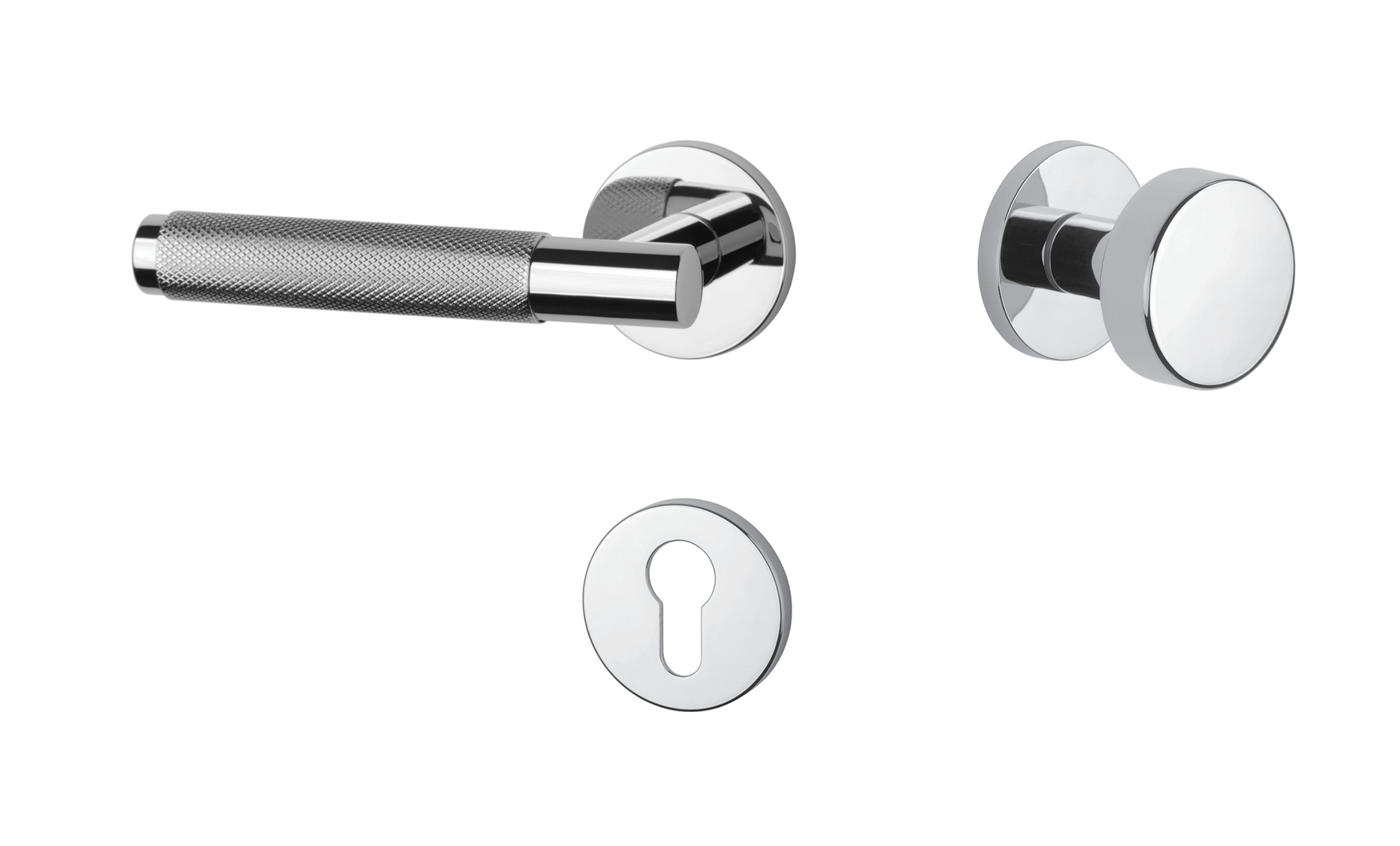 Rozetová klika na interiérové dveře s kulatou rozetou je vyrobená z materiálů vysoké kvality - zamak a je povrchově upravená. Rozeta má průměr 53 mm a tloušťku jen 7 mm. Minimalistický design rozety s vysokou stabilitou kliky na dveřích působí jemně, a tím ponechává prostor pro vyniknutí designu samotné kliky.