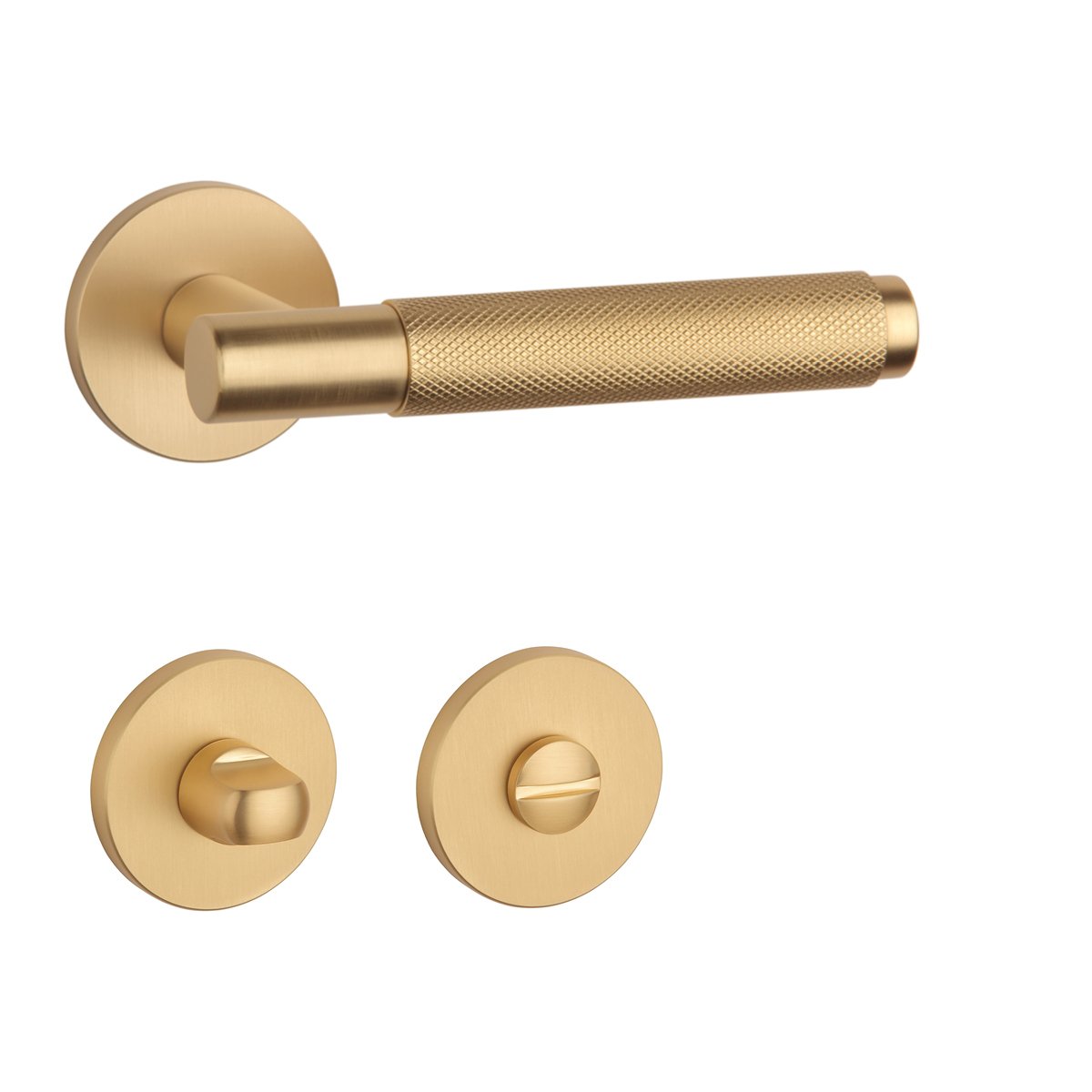 Rozetová klika na interiérové dveře s kulatou rozetou je vyrobená z materiálů vysoké kvality - zamak a je povrchově upravená. Rozeta má průměr 53 mm a tloušťku jen 7 mm. Minimalistický design rozety s vysokou stabilitou kliky na dveřích působí jemně, a tím ponechává prostor pro vyniknutí designu samotné kliky.