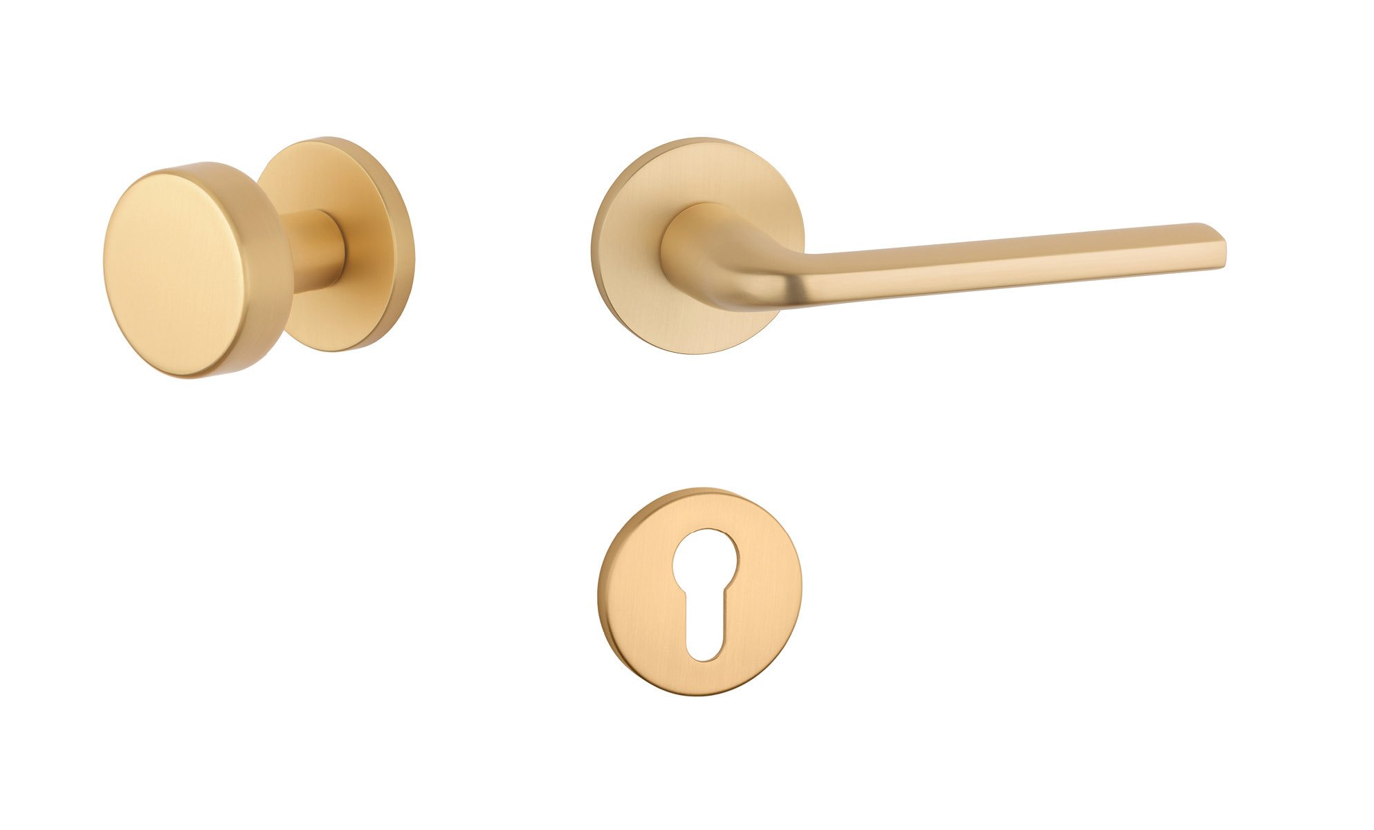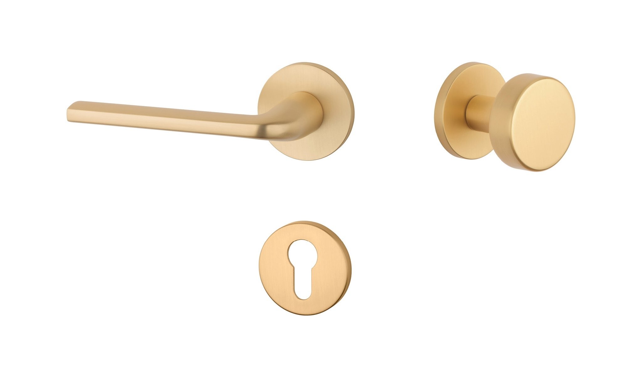 Rozetová klika na interiérové dveře s kulatou rozetou je vyrobena z materiálů vysoké kvality - zamak a je povrchově upravena. Rozeta má průměr 52 mm a tloušťku jen 7 mm. Minimalistický design rozety s vysokou stabilitou kliky na dveřích působí jemně, a tím ponechává prostor pro vyniknutí designu samotné kliky.