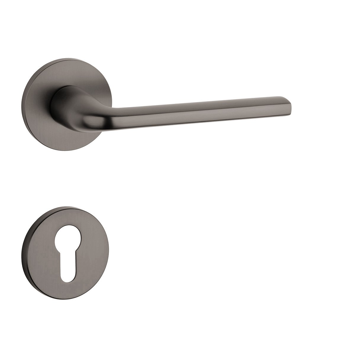 Rozetová klika na interiérové dveře s kulatou rozetou je vyrobena z materiálů vysoké kvality - zamak a je povrchově upravena. Rozeta má průměr 52 mm a tloušťku jen 7 mm. Minimalistický design rozety s vysokou stabilitou kliky na dveřích působí jemně, a tím ponechává prostor pro vyniknutí designu samotné kliky.