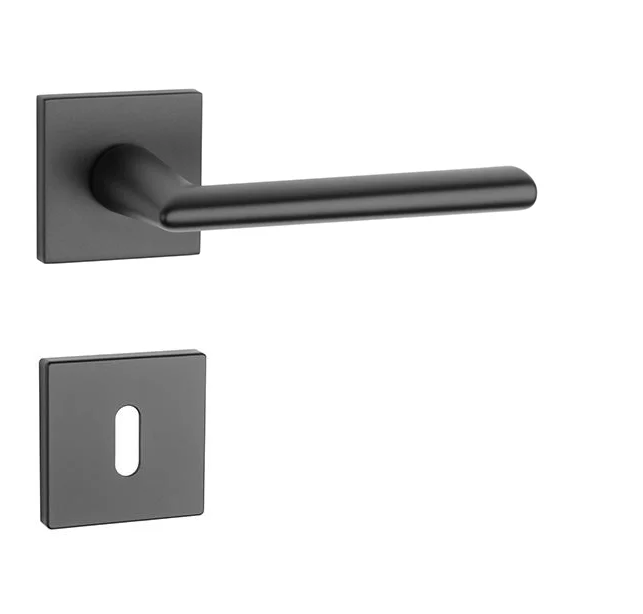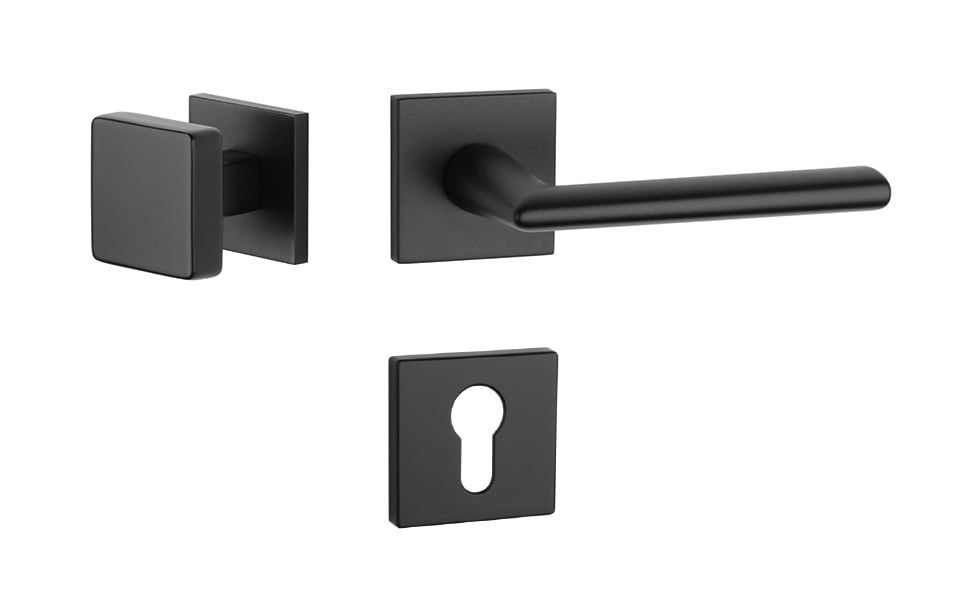 Rozetová klika na interiérové dveře s hranatou rozetou je vyrobena z materiálů vysoké kvality - zamak a je povrchově upravena. Rozeta má rozměr 53x53 mm a tloušťku jen 7 mm. Minimalistický design rozety s vysokou stabilitou kliky na dveřích působí jemně, a tím ponechává prostor pro vyniknutí designu samotné kliky.
