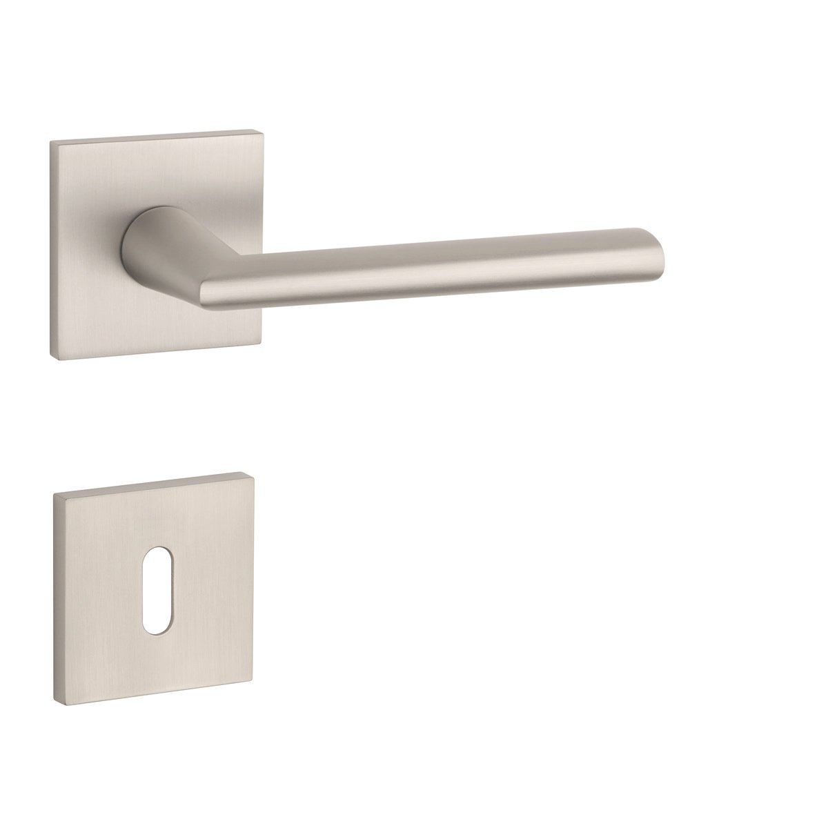 Rozetová klika na interiérové dveře s hranatou rozetou je vyrobena z materiálů vysoké kvality - zamak a je povrchově upravena. Rozeta má rozměr 53x53 mm a tloušťku jen 7 mm. Minimalistický design rozety s vysokou stabilitou kliky na dveřích působí jemně, a tím ponechává prostor pro vyniknutí designu samotné kliky.