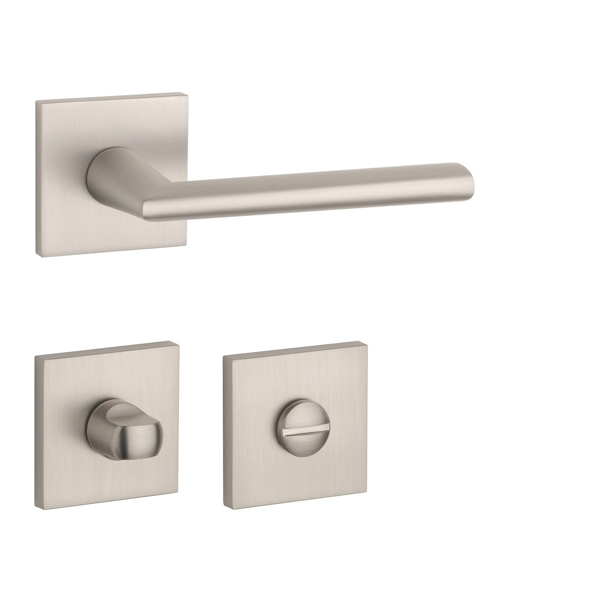 Rozetová klika na interiérové dveře s hranatou rozetou je vyrobena z materiálů vysoké kvality - zamak a je povrchově upravena. Rozeta má rozměr 53x53 mm a tloušťku jen 7 mm. Minimalistický design rozety s vysokou stabilitou kliky na dveřích působí jemně, a tím ponechává prostor pro vyniknutí designu samotné kliky.