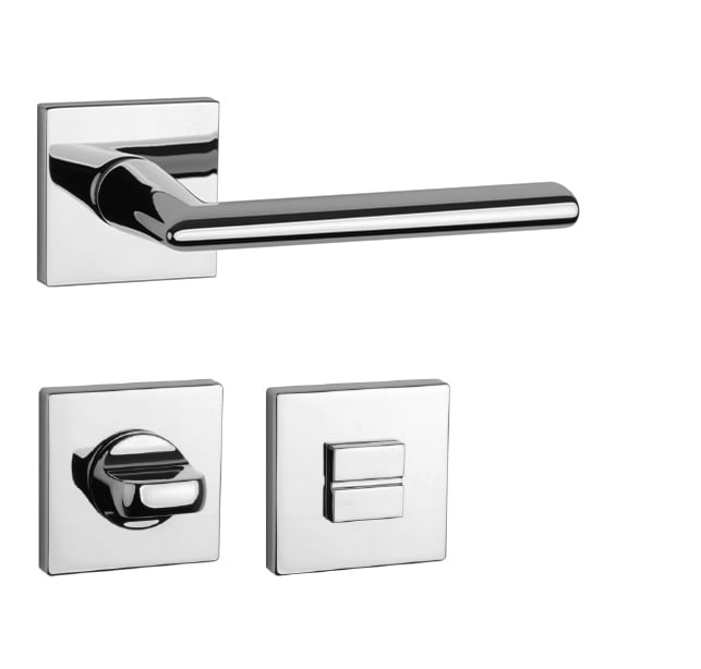 Rozetová klika na interiérové dveře s hranatou rozetou je vyrobena z materiálů vysoké kvality - zamak a je povrchově upravena. Rozeta má rozměr 52x52 mm a tloušťku jen 7 mm. Minimalistický design rozety s vysokou stabilitou kliky na dveřích působí jemně, a tím ponechává prostor pro vyniknutí designu samotné kliky.
