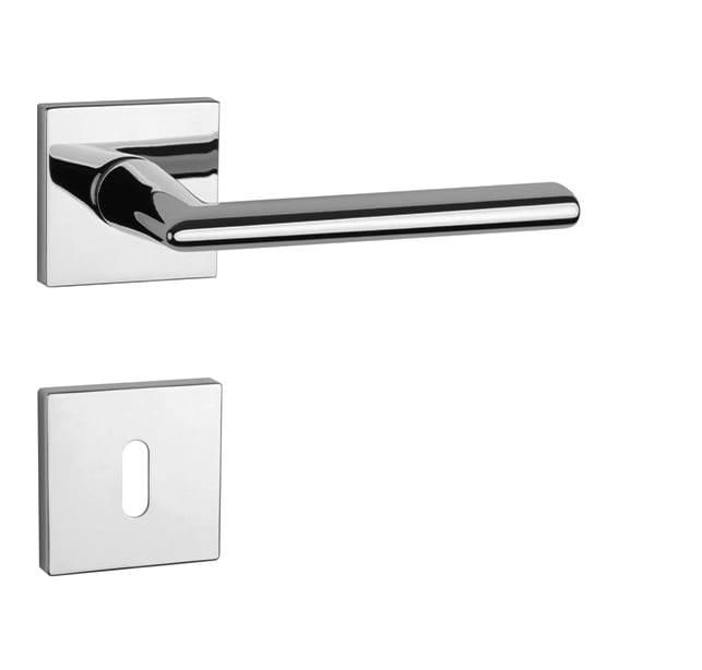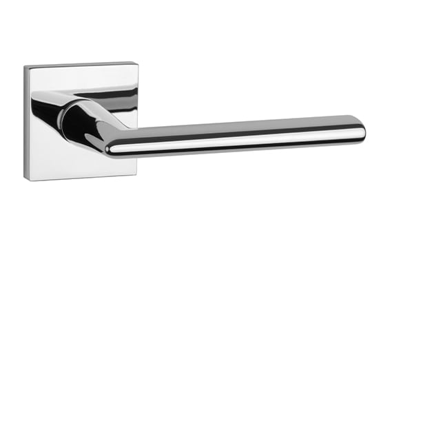 Rozetová klika na interiérové dveře s hranatou rozetou je vyrobena z materiálů vysoké kvality - zamak a je povrchově upravena. Rozeta má rozměr 52x52 mm a tloušťku jen 7 mm. Minimalistický design rozety s vysokou stabilitou kliky na dveřích působí jemně, a tím ponechává prostor pro vyniknutí designu samotné kliky.