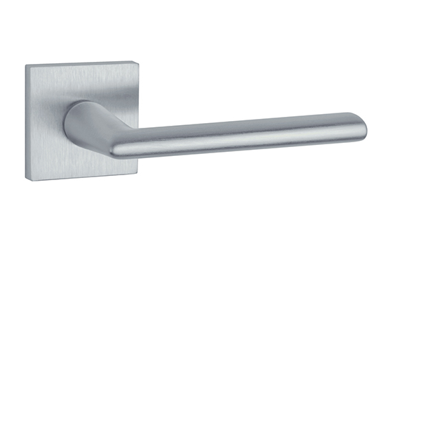Rozetová klika na interiérové dveře s hranatou rozetou je vyrobena z materiálů vysoké kvality - zamak a je povrchově upravena. Rozeta má rozměr 52x52 mm a tloušťku jen 7 mm. Minimalistický design rozety s vysokou stabilitou kliky na dveřích působí jemně, a tím ponechává prostor pro vyniknutí designu samotné kliky.