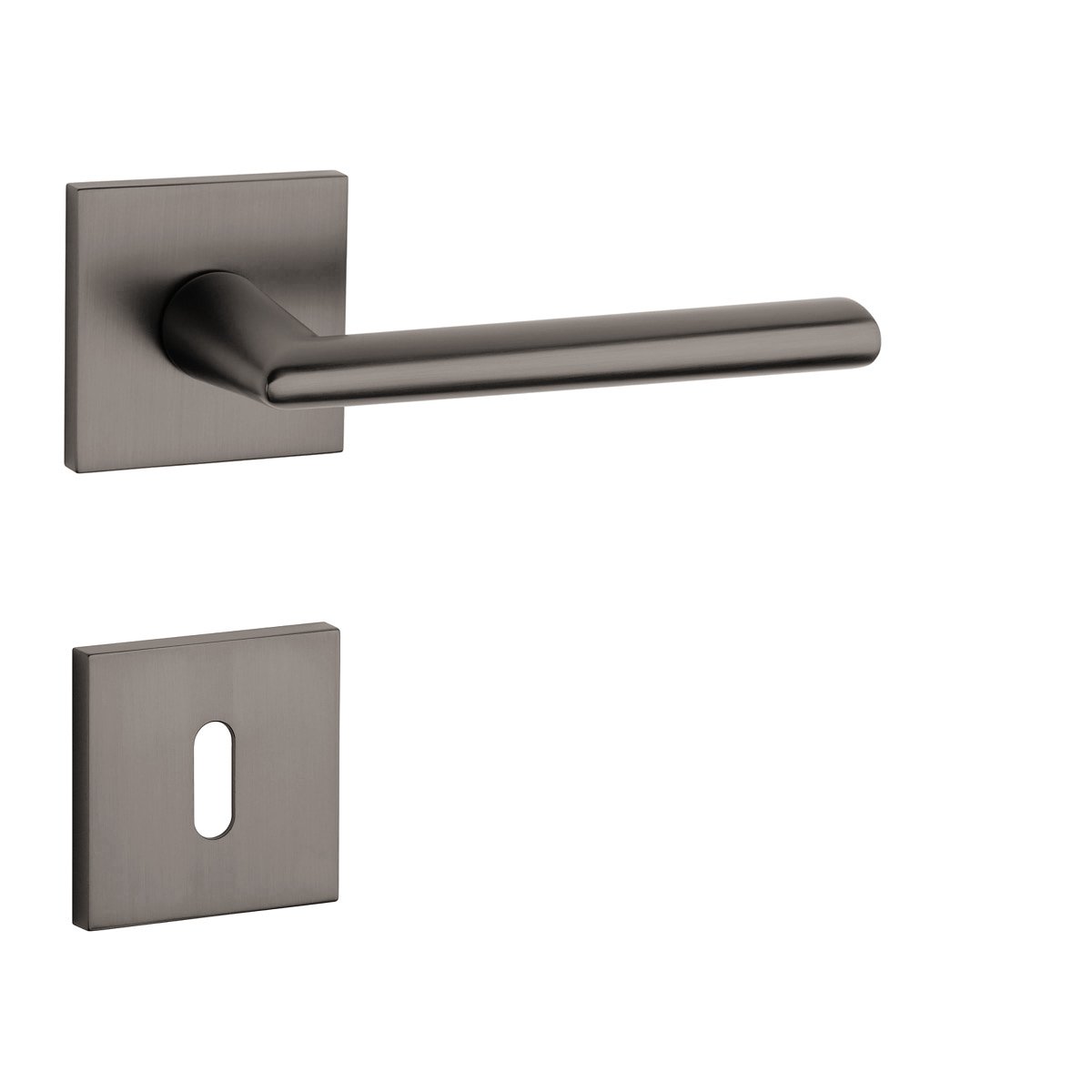 Rozetová klika na interiérové dveře s hranatou rozetou je vyrobena z materiálů vysoké kvality - zamak a je povrchově upravena. Rozeta má rozměr 53x53 mm a tloušťku jen 7 mm. Minimalistický design rozety s vysokou stabilitou kliky na dveřích působí jemně, a tím ponechává prostor pro vyniknutí designu samotné kliky.