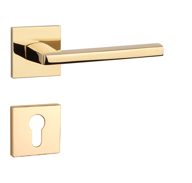 Rozetová klika na interiérové dveře s hranatou rozetou je vyrobena z materiálů vysoké kvality - zamak a je povrchově upravena. Rozeta má rozměr 52x52 mm a tloušťku jen 7 mm. Minimalistický design rozety s vysokou stabilitou kliky na dveřích působí jemně, a tím ponechává prostor pro vyniknutí designu samotné kliky.