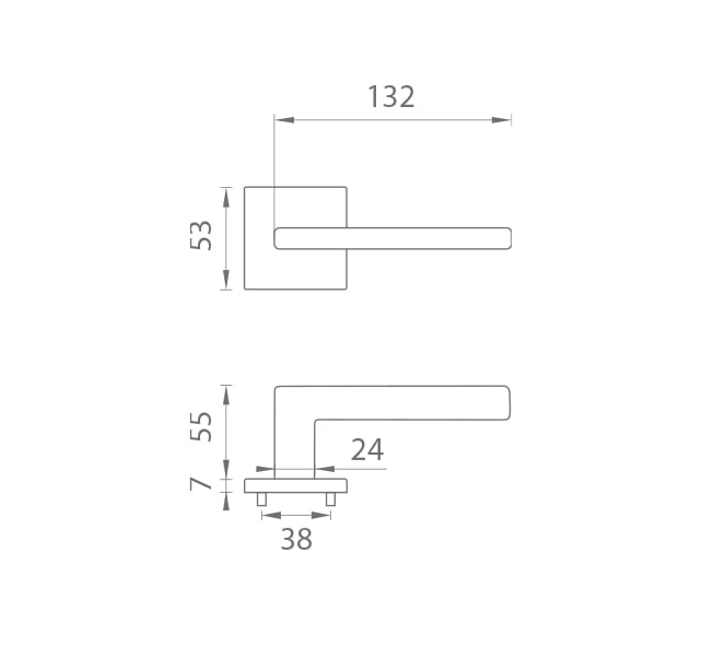 Rozetová klika na interiérové dveře s hranatou rozetou je vyrobena z materiálů vysoké kvality - zamak a je povrchově upravena. Rozeta má rozměr 52x52 mm a tloušťku jen 7 mm. Minimalistický design rozety s vysokou stabilitou kliky na dveřích působí jemně, a tím ponechává prostor pro vyniknutí designu samotné kliky.