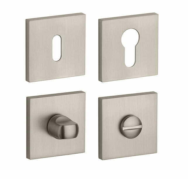 Hranatá rozeta je vyrobena z materiálů vysoké kvality - zamak a je povrchově upravena. Rozeta má rozměr 52x52 mm, tloušťku 7 mm a oválný otvor pro interiérový klíč (BB), otvor pro cylindrickou vložku (PZ), WC set s vmontovaným klíčem. Balení obsahuje 2 kusy rozet (pár) a rozety WC jsou v balení jako set.