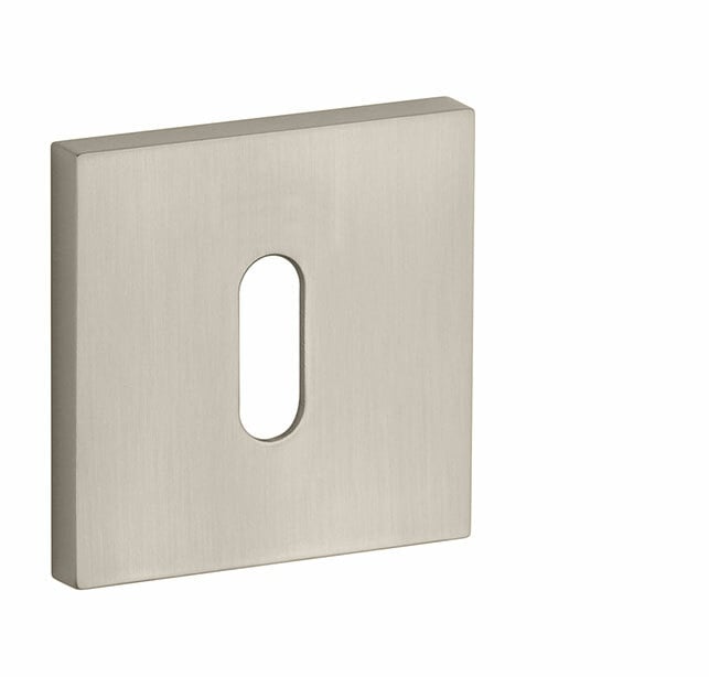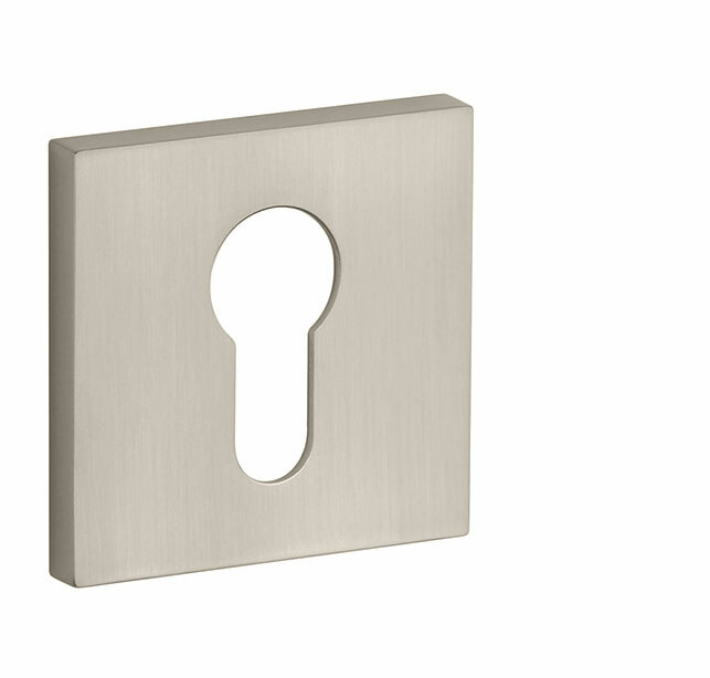 Hranatá rozeta je vyrobena z materiálů vysoké kvality - zamak a je povrchově upravena. Rozeta má rozměr 52x52 mm, tloušťku 7 mm a oválný otvor pro interiérový klíč (BB), otvor pro cylindrickou vložku (PZ), WC set s vmontovaným klíčem. Balení obsahuje 2 kusy rozet (pár) a rozety WC jsou v balení jako set.