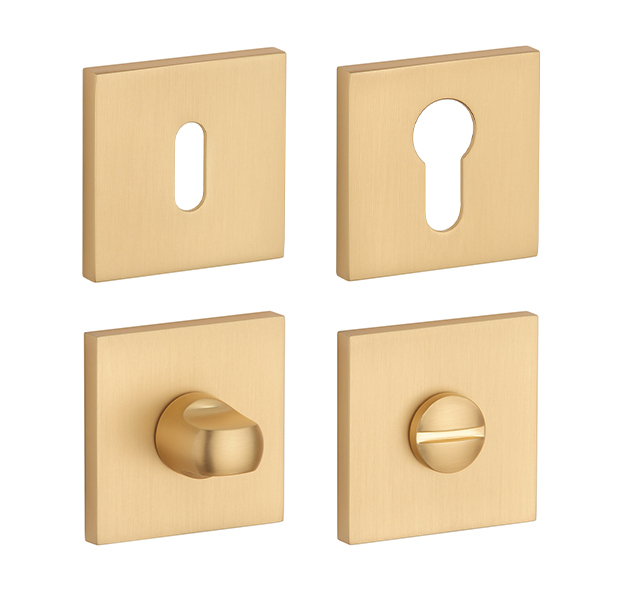 Hranatá rozeta je vyrobena z materiálů vysoké kvality - zamak a je povrchově upravena. Rozeta má rozměr 52x52 mm, tloušťku 7 mm a oválný otvor pro interiérový klíč (BB), otvor pro cylindrickou vložku (PZ), WC set s vmontovaným klíčem. Balení obsahuje 2 kusy rozet (pár) a rozety WC jsou v balení jako set.