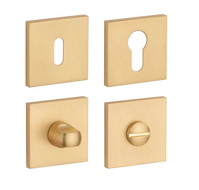 Hranatá rozeta je vyrobena z materiálů vysoké kvality - zamak a je povrchově upravena. Rozeta má rozměr 52x52 mm, tloušťku 7 mm a oválný otvor pro interiérový klíč (BB), otvor pro cylindrickou vložku (PZ), WC set s vmontovaným klíčem. Balení obsahuje 2 kusy rozet (pár) a rozety WC jsou v balení jako set.