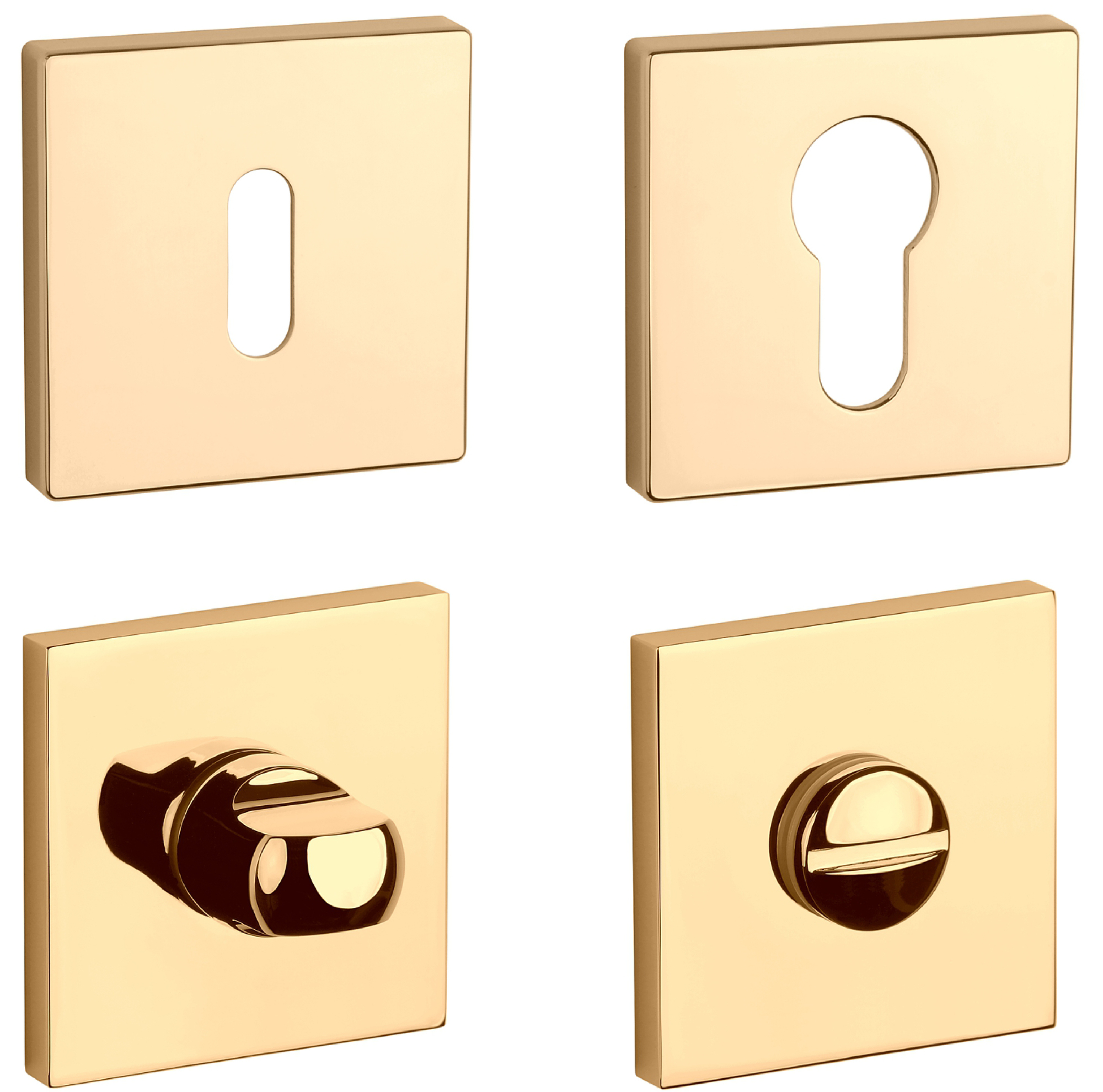 Hranatá rozeta je vyrobena z materiálů vysoké kvality - zamak a je povrchově upravena. Rozeta má rozměr 52x52 mm, tloušťku 7 mm a oválný otvor pro interiérový klíč (BB), otvor pro cylindrickou vložku (PZ), WC set s vmontovaným klíčem. Balení obsahuje 2 kusy rozet (pár) a rozety WC jsou v balení jako set.