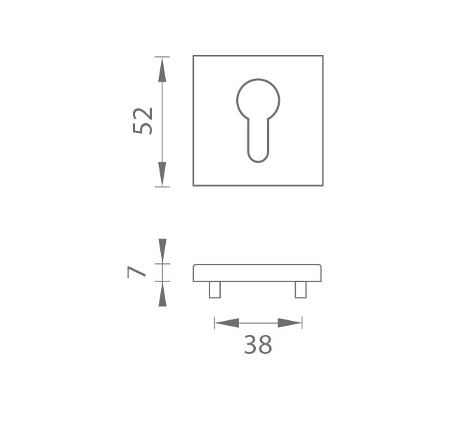 Hranatá rozeta je vyrobena z materiálů vysoké kvality - zamak a je povrchově upravena. Rozeta má rozměr 52x52 mm, tloušťku 7 mm a oválný otvor pro interiérový klíč (BB), otvor pro cylindrickou vložku (PZ), WC set s vmontovaným klíčem. Balení obsahuje 2 kusy rozet (pár) a rozety WC jsou v balení jako set.