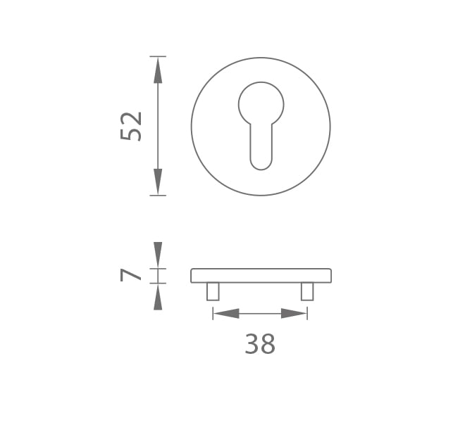 Kulatá rozeta je vyrobena z materiálů vysoké kvality - zamak a je povrchově upravena. Rozeta má průměr 52 mm, tloušťku 7 mm a oválný otvor pro interiérový klíč (BB), otvor pro cylindrickou vložku (PZ), WC set s vmontovaným klíčem. Balení obsahuje 2 kusy rozet (pár) a rozety WC jsou v balení jako set.