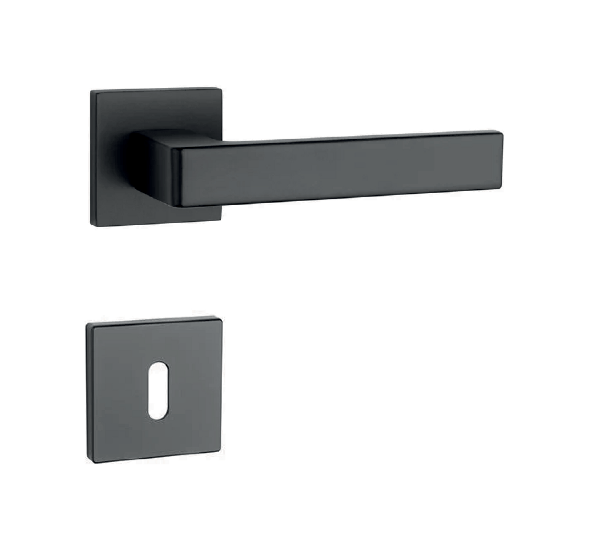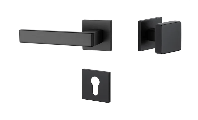 Rozetová klika na interiérové dveře s hranatou rozetou je vyrobena z materiálů vysoké kvality - zamak a je povrchově upravena. Rozeta má rozměr 52x52 mm a tloušťku jen 7 mm. Minimalistický design rozety s vysokou stabilitou kliky na dveřích působí jemně, a tím ponechává prostor pro vyniknutí designu samotné kliky.