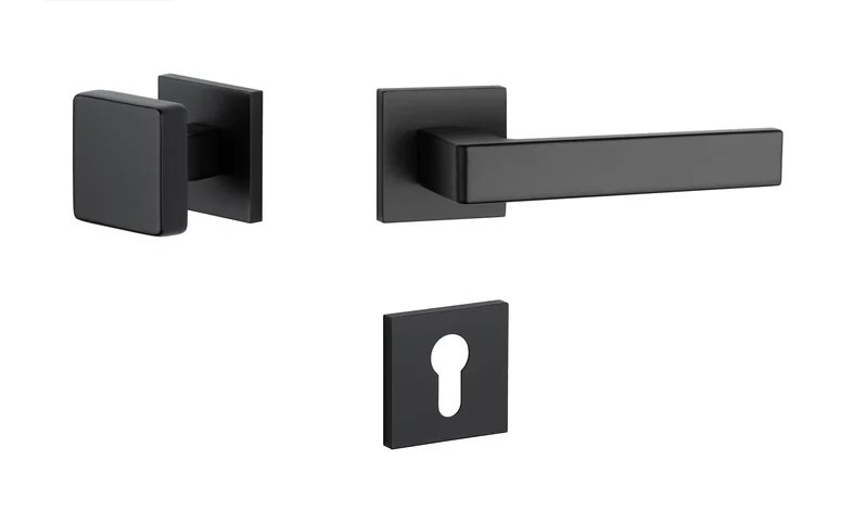 Rozetová klika na interiérové dveře s hranatou rozetou je vyrobena z materiálů vysoké kvality - zamak a je povrchově upravena. Rozeta má rozměr 52x52 mm a tloušťku jen 7 mm. Minimalistický design rozety s vysokou stabilitou kliky na dveřích působí jemně, a tím ponechává prostor pro vyniknutí designu samotné kliky.