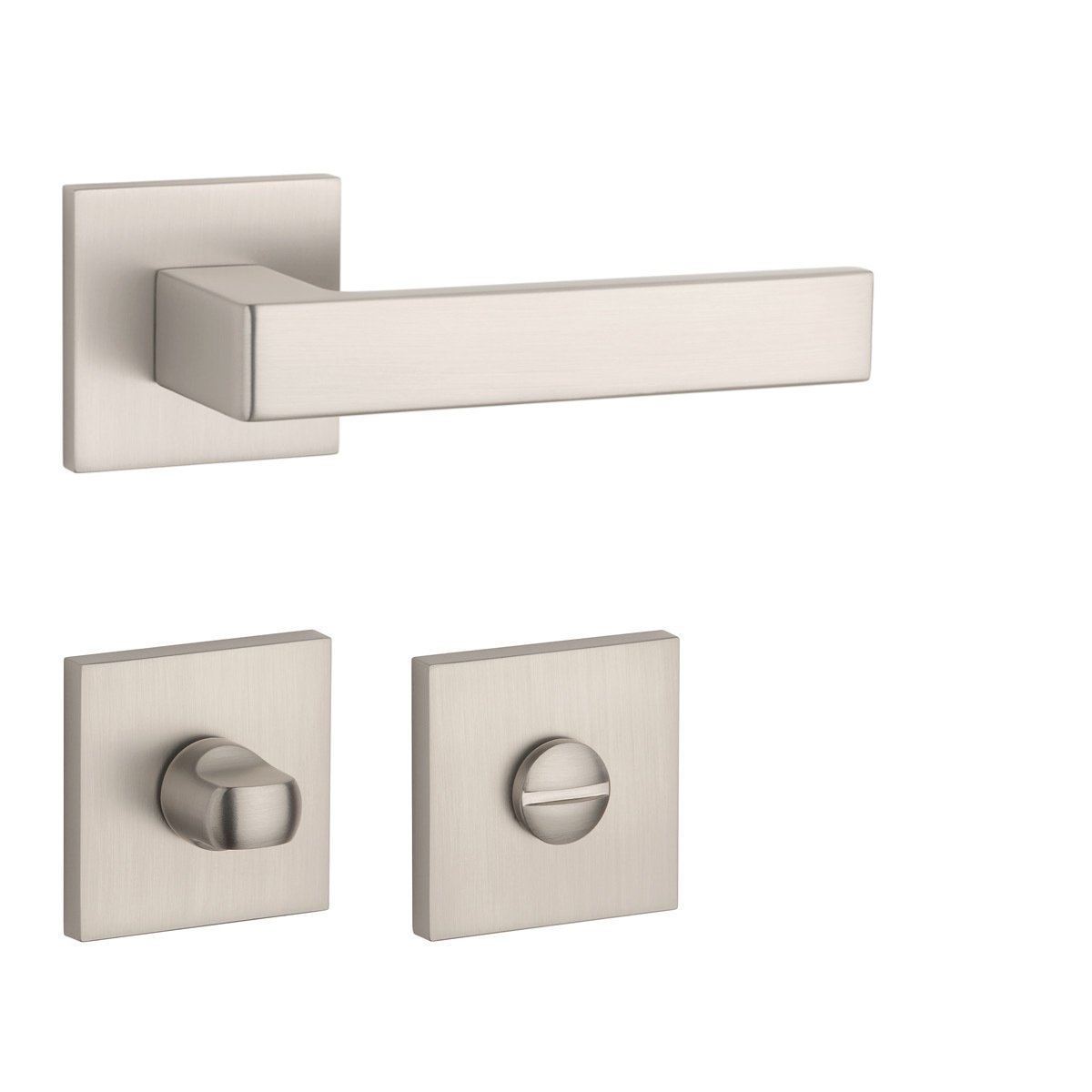 Rozetová klika na interiérové dveře s hranatou rozetou je vyrobena z materiálů vysoké kvality - zamak a je povrchově upravena. Rozeta má rozměr 53x53 mm a tloušťku jen 7 mm. Minimalistický design rozety s vysokou stabilitou kliky na dveřích působí jemně, a tím ponechává prostor pro vyniknutí designu samotné kliky.