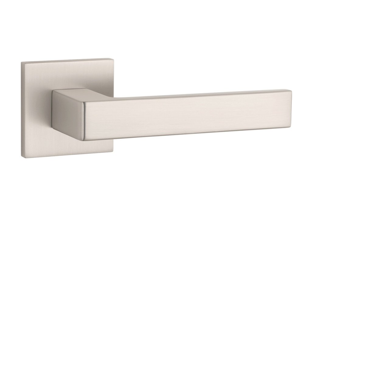 Rozetová klika na interiérové dveře s hranatou rozetou je vyrobena z materiálů vysoké kvality - zamak a je povrchově upravena. Rozeta má rozměr 53x53 mm a tloušťku jen 7 mm. Minimalistický design rozety s vysokou stabilitou kliky na dveřích působí jemně, a tím ponechává prostor pro vyniknutí designu samotné kliky.