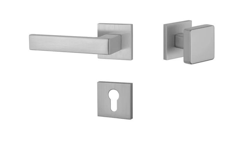 Rozetová klika na interiérové dveře s hranatou rozetou je vyrobena z materiálů vysoké kvality - zamak a je povrchově upravena. Rozeta má rozměr 52x52 mm a tloušťku jen 7 mm. Minimalistický design rozety s vysokou stabilitou kliky na dveřích působí jemně, a tím ponechává prostor pro vyniknutí designu samotné kliky.