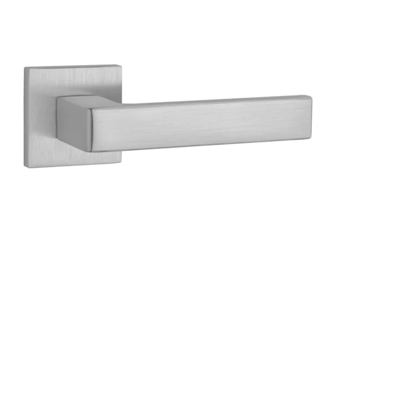 Rozetová klika na interiérové dveře s hranatou rozetou je vyrobena z materiálů vysoké kvality - zamak a je povrchově upravena. Rozeta má rozměr 52x52 mm a tloušťku jen 7 mm. Minimalistický design rozety s vysokou stabilitou kliky na dveřích působí jemně, a tím ponechává prostor pro vyniknutí designu samotné kliky.
