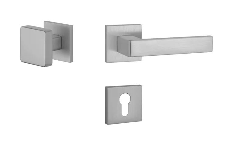 Rozetová klika na interiérové dveře s hranatou rozetou je vyrobena z materiálů vysoké kvality - zamak a je povrchově upravena. Rozeta má rozměr 52x52 mm a tloušťku jen 7 mm. Minimalistický design rozety s vysokou stabilitou kliky na dveřích působí jemně, a tím ponechává prostor pro vyniknutí designu samotné kliky.