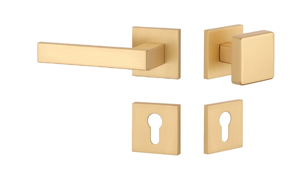 Rozetová klika na interiérové dveře s hranatou rozetou je vyrobena z materiálů vysoké kvality - zamak a je povrchově upravena. Rozeta má rozměr 52x52 mm a tloušťku jen 7 mm. Minimalistický design rozety s vysokou stabilitou kliky na dveřích působí jemně, a tím ponechává prostor pro vyniknutí designu samotné kliky.