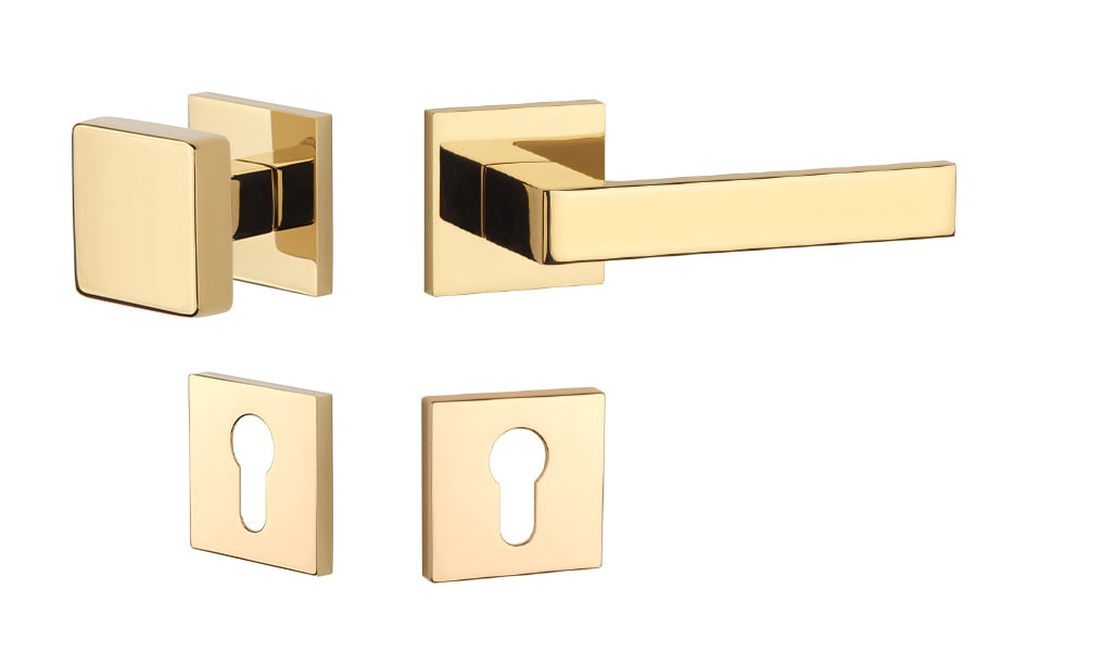 Rozetová klika na interiérové dveře s hranatou rozetou je vyrobena z materiálů vysoké kvality - zamak a je povrchově upravena. Rozeta má rozměr 52x52 mm a tloušťku jen 7 mm. Minimalistický design rozety s vysokou stabilitou kliky na dveřích působí jemně, a tím ponechává prostor pro vyniknutí designu samotné kliky.
