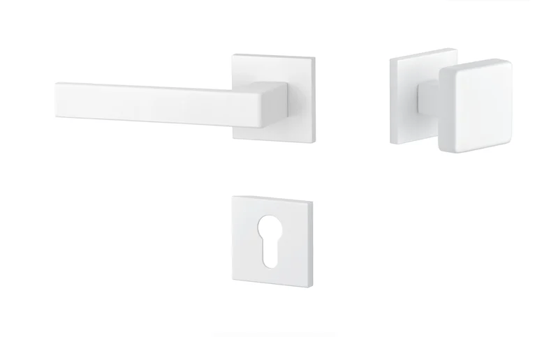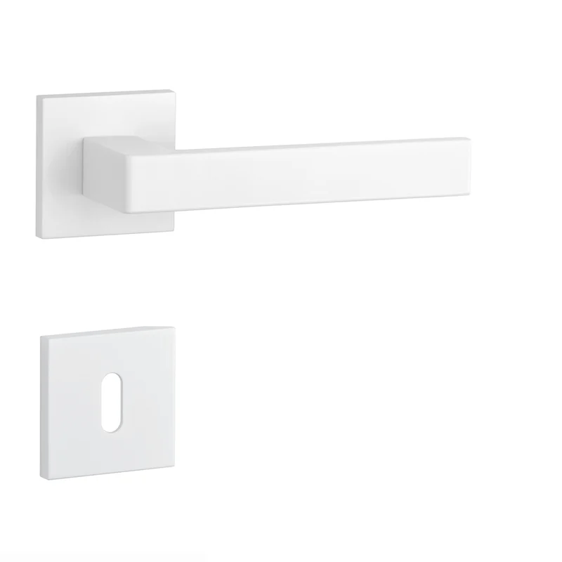 Rozetová klika na interiérové dveře s hranatou rozetou je vyrobena z materiálů vysoké kvality - zamak a je povrchově upravena. Rozeta má rozměr 52x52 mm a tloušťku jen 7 mm. Minimalistický design rozety s vysokou stabilitou kliky na dveřích působí jemně, a tím ponechává prostor pro vyniknutí designu samotné kliky.