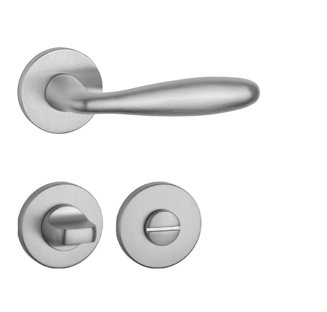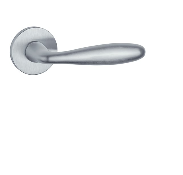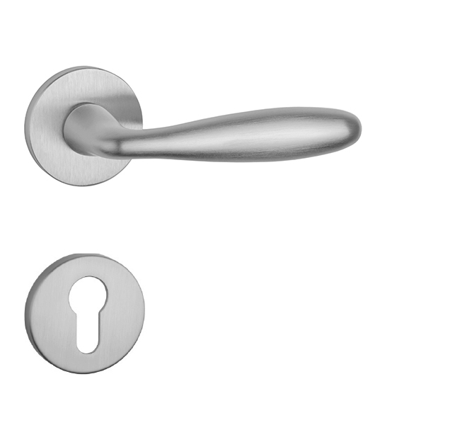 Rozetová klika na interiérové dveře s kulatou rozetou je vyrobena z materiálů vysoké kvality - zamak a je povrchově upravena. Rozeta má průměr 52 mm a tloušťku jen 7 mm. Minimalistický design rozety s vysokou stabilitou kliky na dveřích působí jemně, a tím ponechává prostor pro vyniknutí designu samotné kliky.