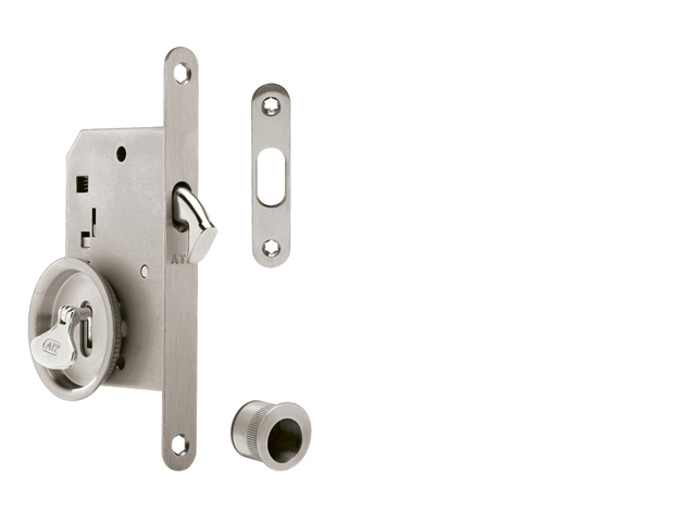 Kulatý set na posuvné dveře s otvorem pro interiérový klíč (BB) s rozměry čela zámku v délce 160 mm, šířce 18 mm, tloušťce 2 mm. Rozteč (vzdálenost mezi otvorem na kliku a vložkou / klíčem) - 72 mm, zádlab - 65 mm a dormas (vzdálenost osy kliky od lišty zámku) - 50 mm.