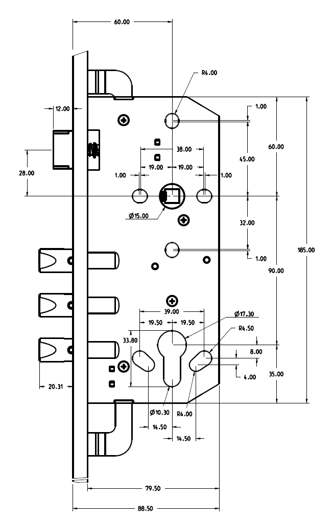 • Hlavní zámek: 2-otáčková závora se 3 body z oceli s niklovým povrchem