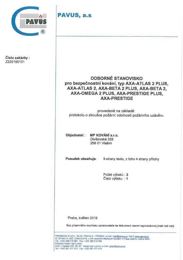 • certifikát bezpečnostní třídy 3 (ČSN EN 1906: 2012)