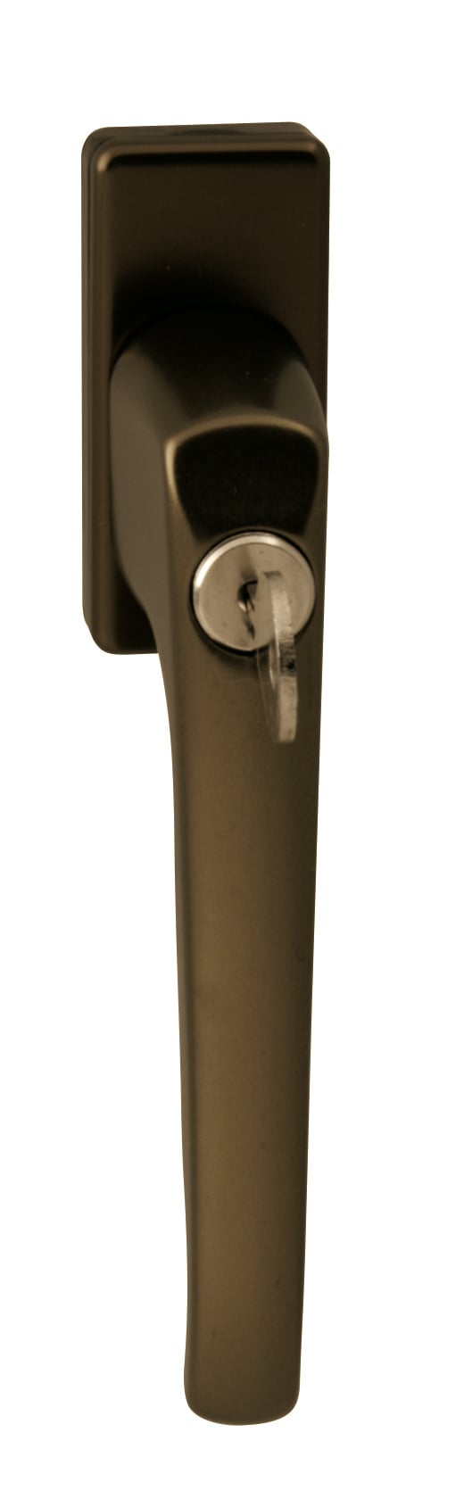 Klika na eurookno s uzamykáním a s hranatou rozetou je vyrobena z hliníku a je povrchově upravena. Rozeta má rozměry 30 mm x 66 mm a tloušťku 10,2 mm.