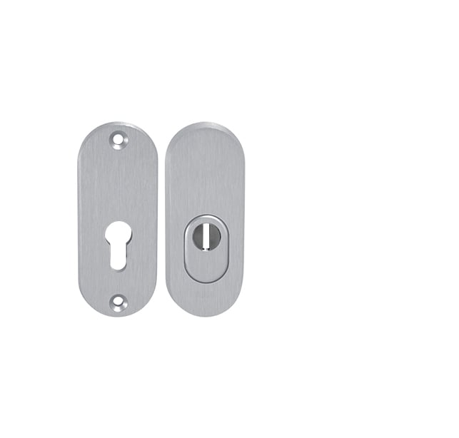 Přídavná bezpečnostní oválná rozeta s překrytím cylindrické vložky je vyrobena z hliníku a je povrchově upravena.