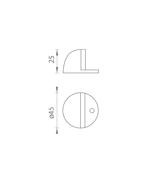 Zarážka dveří na podlahu ŽELVA je vyrobena z vysoce kvalitní nerezavějící oceli, známé jako nerez a je povrchově upravena. Zarážka má průměr 45 mm a výšku 25 mm, montáž zarážky samořezným šroubem.