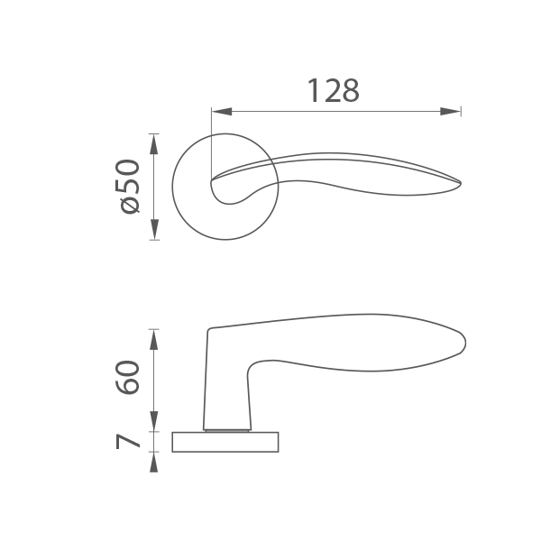 Rozetová klika na interiérové dveře s kulatou rozetou je vyrobena z hliníku a je povrchově upravena. Rozeta má průměr 50 mm a tloušťku 7 mm. Klika neobsahuje vratný mechanismus kliky – pružinu a mechanika kliky je uložená v plastovém pouzdře.